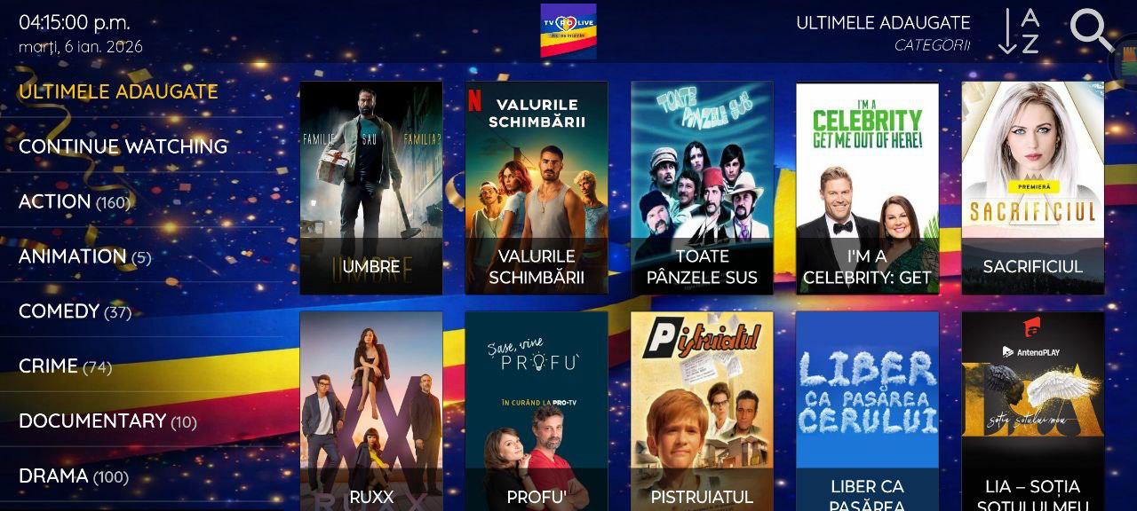 După introducerea datelor de logare, aplicaţia se va deschide automat în pagina principală de unde veţi putea selecta categoria dorită, anume TV Online, Filme sau Seriale. Tot aici veţi găsi şi setările contului, ale aplicaţiei şi data expirării abonamentului.